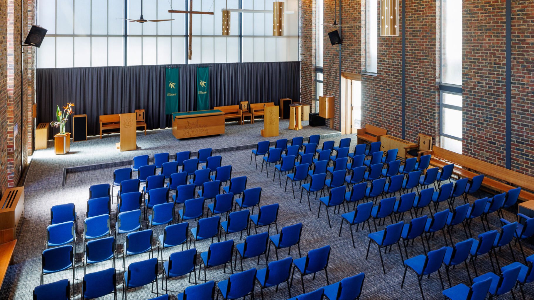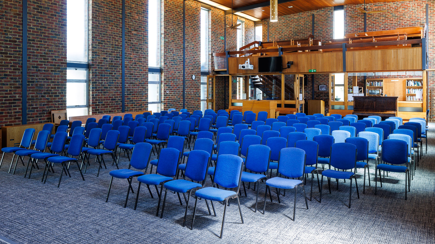The 1960s church remains as a dedicated worship space, using the existing sanctuary furniture and some remaining pews. The flexible seating can be changed to other required configurations….more